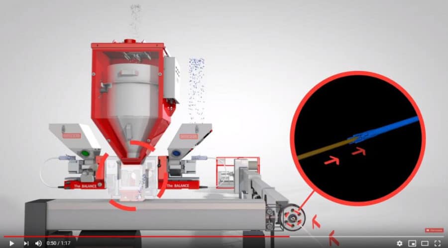 แอนิเมชัน 3 มิตินี้แสดงให้เห็นว่าการหยุดจ่ายสารเคมีบนตัวป้อน Movacolor ทำงานอย่างไรในระหว่างการผลิตส…